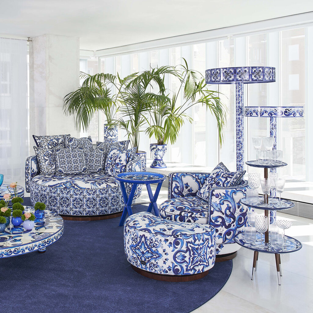 ドルチェ&ガッバーナ・カーサならではのプリントや文化的モチーフを取り入れ、家具をアートピースのように昇華させています。