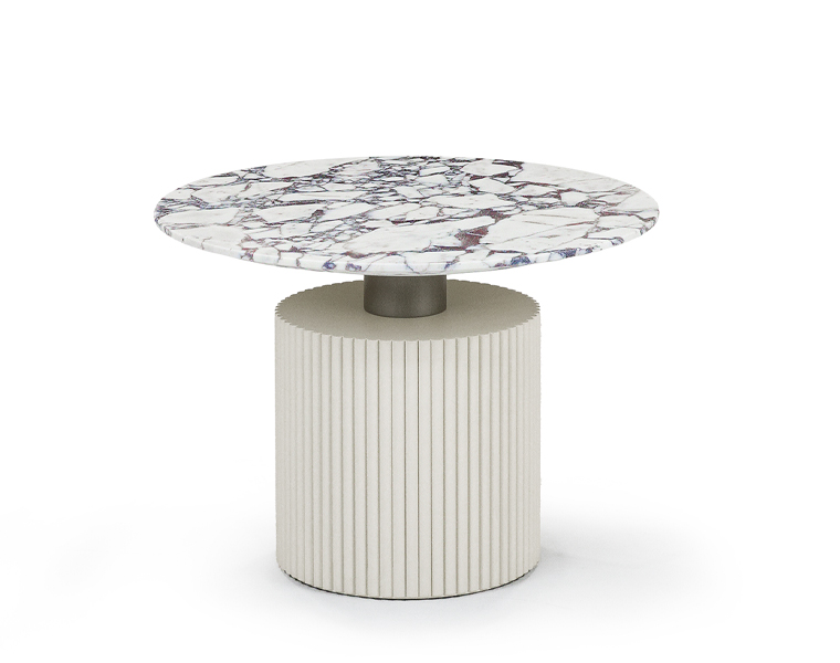 心地よい空間を演出する、洗練された大理石のサイドテーブル。程よい高さとサイズ感で使い勝手が良く、お部屋に温もりと快適さをプラスします。 美しいカラーと素材の組み合わせ、そして特徴的なカンネット模様の円柱型ベースが、洗練された個性を際立たせます。